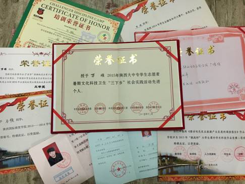 对待工作,他尽职尽责,对待学习,他也有自己的态度,那就是“持之以恒”。一本书总是看了又看,同学问他,他就会笑笑的说:“这是‘温故而知新’”。在图书馆中,在清晨的操场,在洒满落日余晖的教室,我们都会经常看到他的身影,他似乎总有读不完的书,思考不断的问题,慢慢的就变成了一种习惯。他多次在各种竞赛中获奖,曾获校级挑战杯竞赛二等奖;陕西省“挑战杯竞赛”三等奖;2015年在全国两岸三地品牌策划大赛中获三等奖,这些荣誉的取得就是对他个人优秀的真实写照。