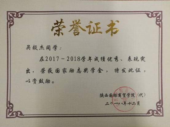 ——2017—2018学年“国家励志奖学金”获得者 我院金融工程专业B1702班 吴毅杰