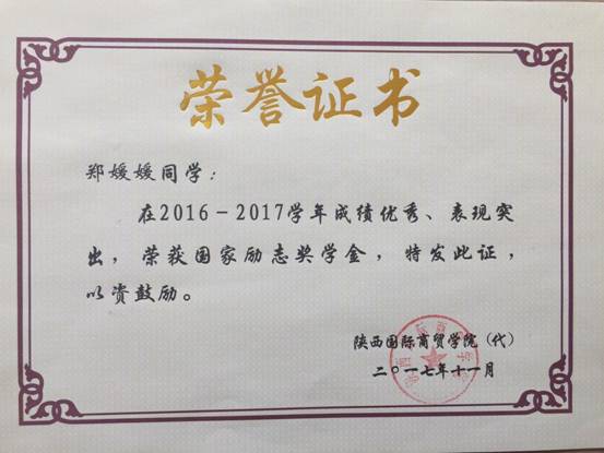 人生贵在坚持。在学习中,她以考研作为自己今后的大目标,在每周甚至每天给自己安排不同的任务,认真严格的完成每个小目标。“量变是质变的必要前提,质变是量变的必然结果。”学习不能一步登天,重要的是循序渐进。从本学年度专业学科竞赛和国家励志奖学金的获得,郑媛媛在自己考研的道路上离梦想又更近了一步。