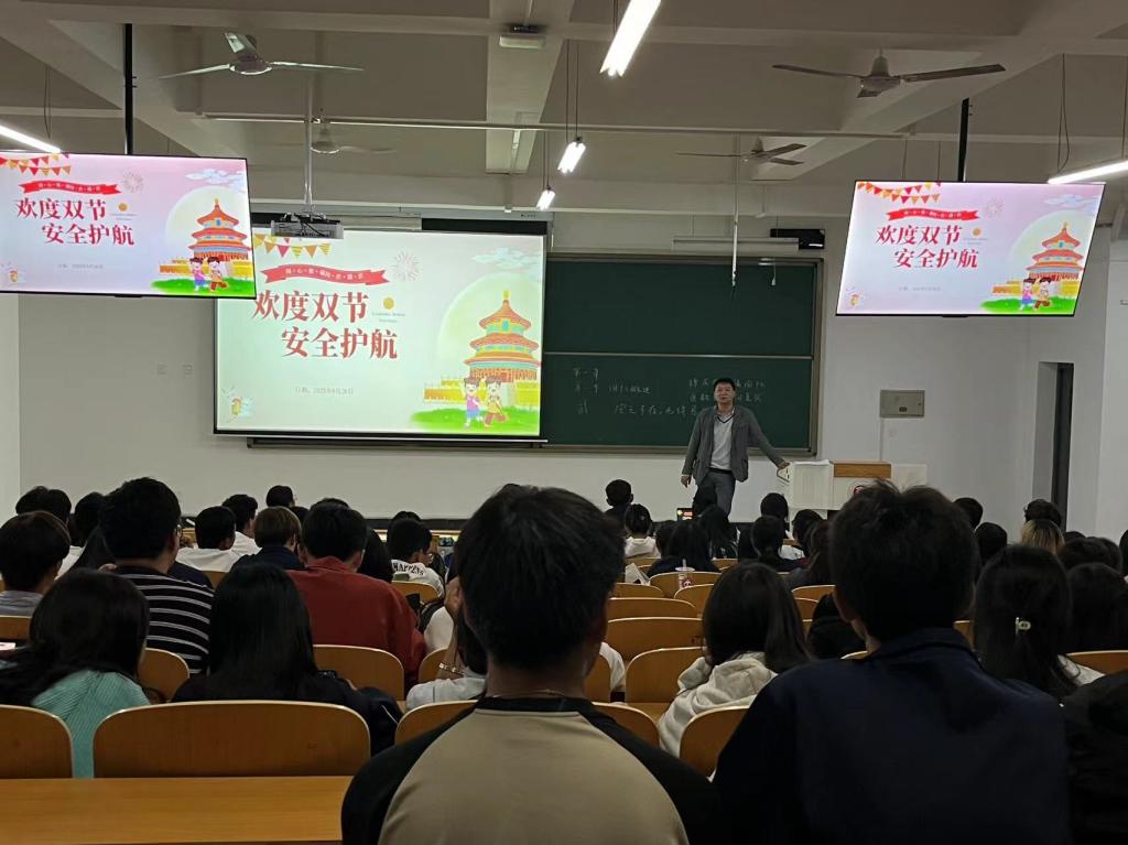 2022级辅导员贺老师提到此次安全教育主题大会是以即将到来的国庆节假期为契机,为大家科普如何在假期与日常生活中保障个人与他人的生命安全以及财产安全。此次大会包含了假期安全、交通安全、线上线下防诈安全、食品安全以及用电防火安全五大方面的安全知识。