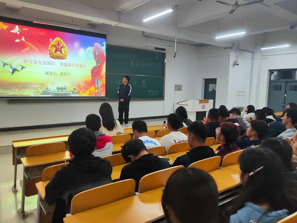 为进一步强化我院学生的国防观念和国防素养,使关心国防、热爱国防、建设国防、保卫国防成为思想共识和自觉行动,9月27日晚,国际经济学院2023、2022级在2教226教室举行了以“踔厉奋发强国防,勇毅前行向复兴”为主题演讲比赛。