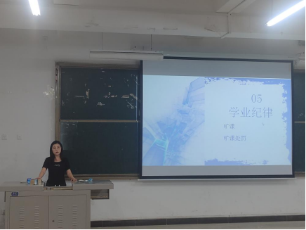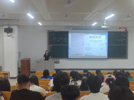 首先,龚子腾老师向同学们讲授了校规校纪的基本知识、处分纪律、学业学分、宿舍管理等各方面内容,并在此基础上,进一步详细说明了请假流程和旷课处罚条例,呼吁同学们要切实遵守校规校纪,强调保护良好学风的重要性。