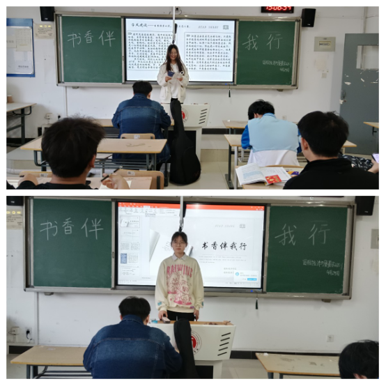 班会过程中,各个同学采取了不同方式来宣传阅读文化。其中学习委员魏亚君的主持从“世界读书日”的历史由来、设立目的、设立意义等方面为同学们介绍了“世界读书日”的相关知识;同时其他同学还通过介绍“书”的名言警句、古今中外的书香文化,带同学们感受阅读的魅力,引导学生通过阅读修身养性、明理得道,思接千载、纵横万里,激发学生阅读热情,凝练阅读习惯,营造浓郁的阅读氛围,进一步建设“书香校园”。