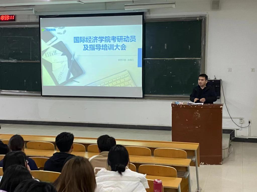 为激发我院学生考研热情,了解考研形式,帮助学生明确考研目标、做好考研规划。3月22日19:00点,国际经济学院联合学校培训部及国际教育学院在2J227举办了考研动员及留学政策解读大会,学院党总支副书记荣超、2020级辅导员徐亚岚、2021级辅导员龚子腾以及大二、大三220余名学生共同参加。