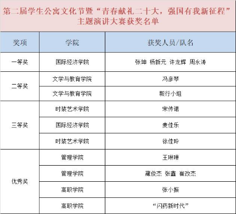 为进一步团结引领广大青年坚定跟党走、建功新时代,努力在党的建设中贡献青春才智。由学生处主办国际经济学院承办的第二届公寓文化节活动,以“青春献礼二十大,强国有我新征程”为主题的演讲比赛。经过上一轮的线上投票活动,于11月22日下午正式进入到线下联评阶段,本次线下联评诚邀了学生处公寓科刘宾科长、以及提交作品学院的教师代表作为评委,本着公开公平公正的原则,举行了第二届学生公寓文化节暨“青春献礼二十大,强国有我新征程”主题演讲大赛。