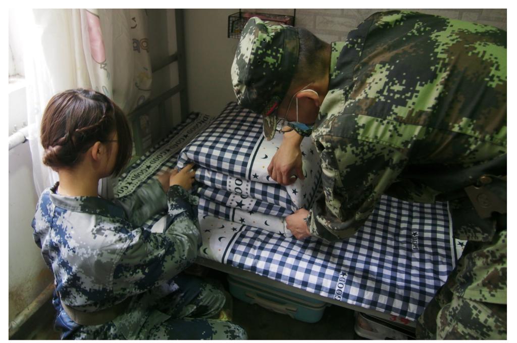 退伍军人入寝室指导内务为新生创建星级文明寝室做出了最直观的示范,进一步有效普及学校宿舍内务管理标准,为新生更快的适应集体生活,养成良好的生活习惯,营造温馨整洁的学习、生活环境打下了良好的基础。