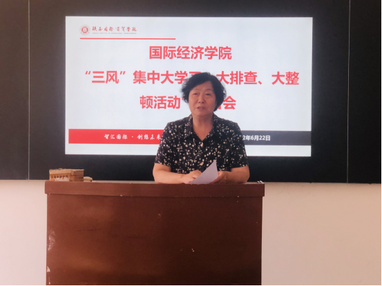 会上,路敏书记根据学校《关于开展我校“作风、教风、学风”建设突出问题大排查的通知》的要求,结合我院工作实际,宣读了《国际经济学院“三风”集中大学习、大排查、大整顿活动工作方案》。她指出要切实推进“作风、教风、学风”集中大学习、大排查、大整顿工作落地见效,着力解决我院工作中存在的突出问题,使学院管理更趋规范、科学,全面提升教育教学质量。