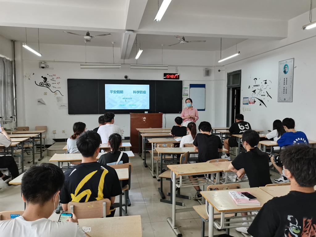目前新冠肺炎疫情反反复复,各班级通过主题班会,进一步明确,同学们要从思想上重视,从行动上落实,非必要不外出,尽量减少人员接触;因事回家、外出的同学也明确了具体要求:要求同学们自觉遵守国家法律和校规校纪,在节假日期间不乘坐无牌照车辆、不参加不符合大学生身份的活动、并适当安排假期学习任务,做好后续学业规划,远离网络游戏,提高网络信息方面的安全保护意识,希望同学们度过一个充实而有意义的假期。