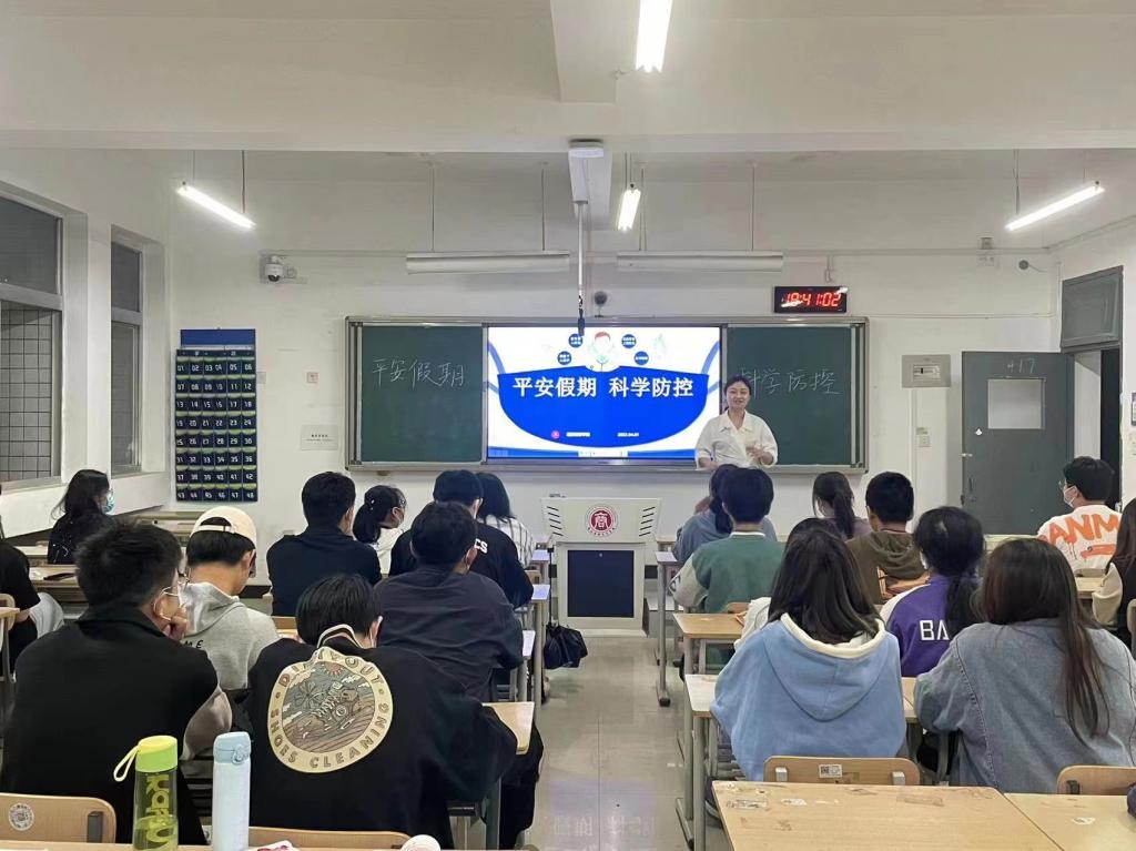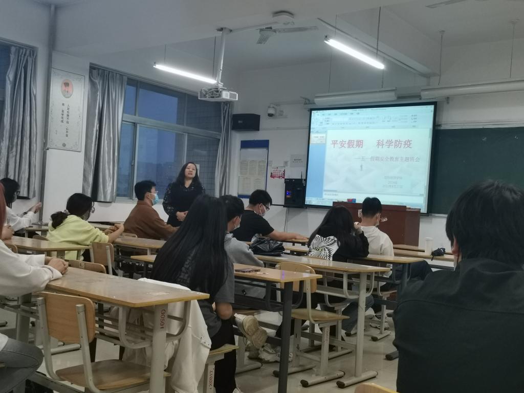 为做好 2022 年五一节假期学生安全稳定工作,提高同学们假期安全防范意识,遵守疫情防控政策,确保学生生命健康和校园安全稳定,4月27日晚,国际经济学院各班级组织召开“平安假期科学防疫五一假期安全教育主题班会”。