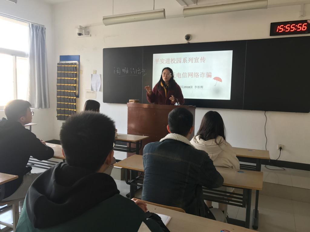 会上,李老师通过案例讲解、播放视频等方式,将诈骗骗术层层剖析,总结防范措施,重点分析了大学生身边的“兼职刷单”“校园贷”“杀猪盘”等典型案例,督促同学们提高防范意识预防诈骗。主题班会使同学们强化了防范意识,掌握了防范技能,筑牢了安全防线。