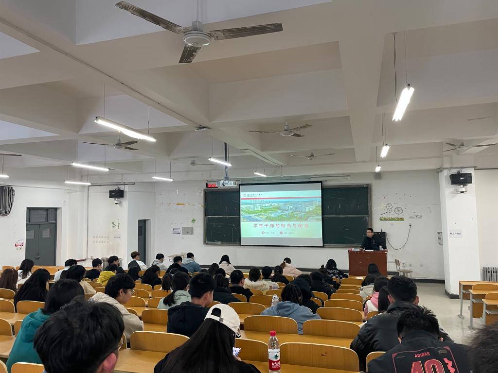 为加强班团学干部队伍建设,提高学生干部的综合素质,11月24日16:00时,国际经济学院在2J227举办2021年新任班团学干部培训班。国际经济学院团总支书记荣超出席了培训班并做了主题培训。新任班团学学生干部共计80余人参加了培训班。