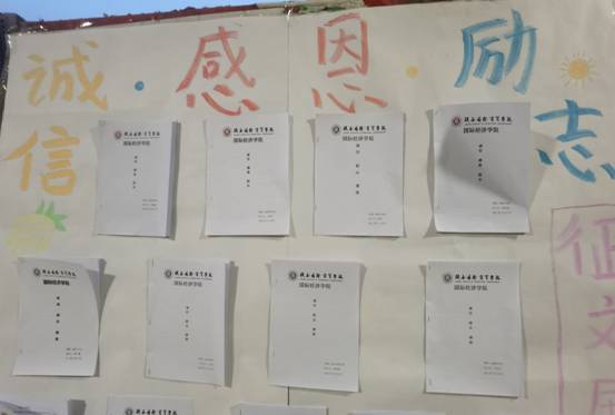 【开展方式】恰逢建党一百周年,吾辈宏志热血青年岂能无所作为?积极响应号召,诚信、感恩、励志正是最基本的要求。在团支书的号召下,国际经济与贸易2003班学子们积极写下了来自他们的诚信、感恩和励志征文,正如这盛世一样,他们的征文也展现在了众人的眼中,互助,互搏,互进。