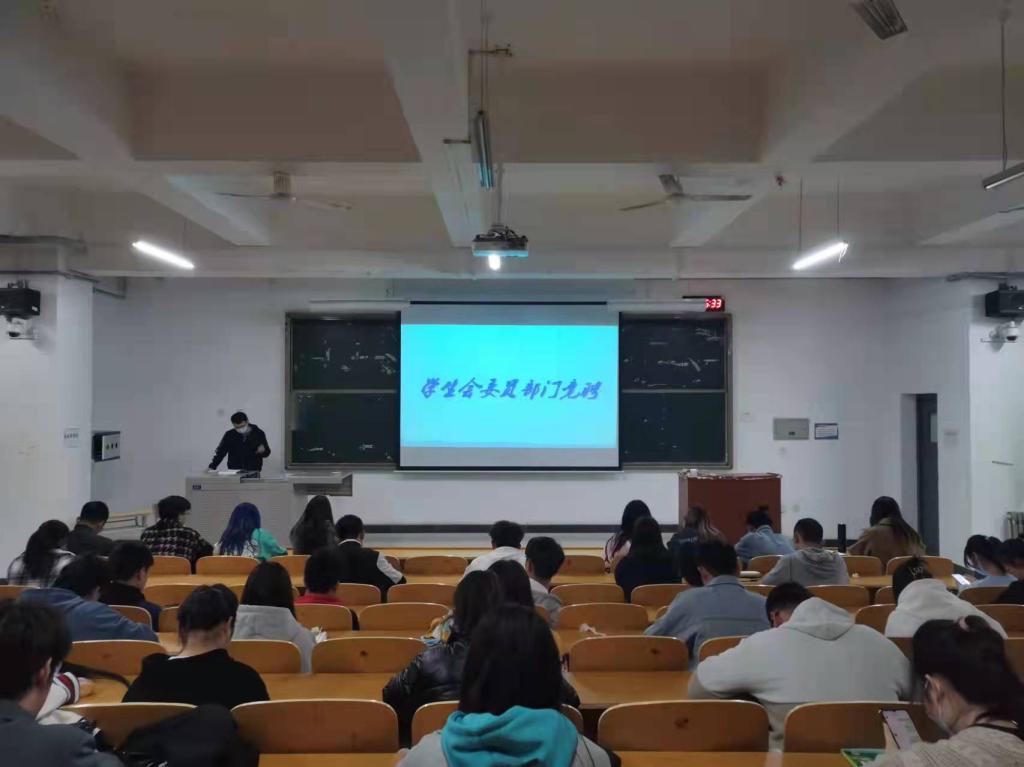 为了进一步完善我院学生干部队伍建设,充分发挥学生自治组织作用,更好为学院学生服务,结合疫情防控工作实际,10月28日、11月1日晚19:00时,学院第十四届团总支、学生会各部门纳新竞职演讲大会分批进行,全体辅导员、团学干部参加本次会议。