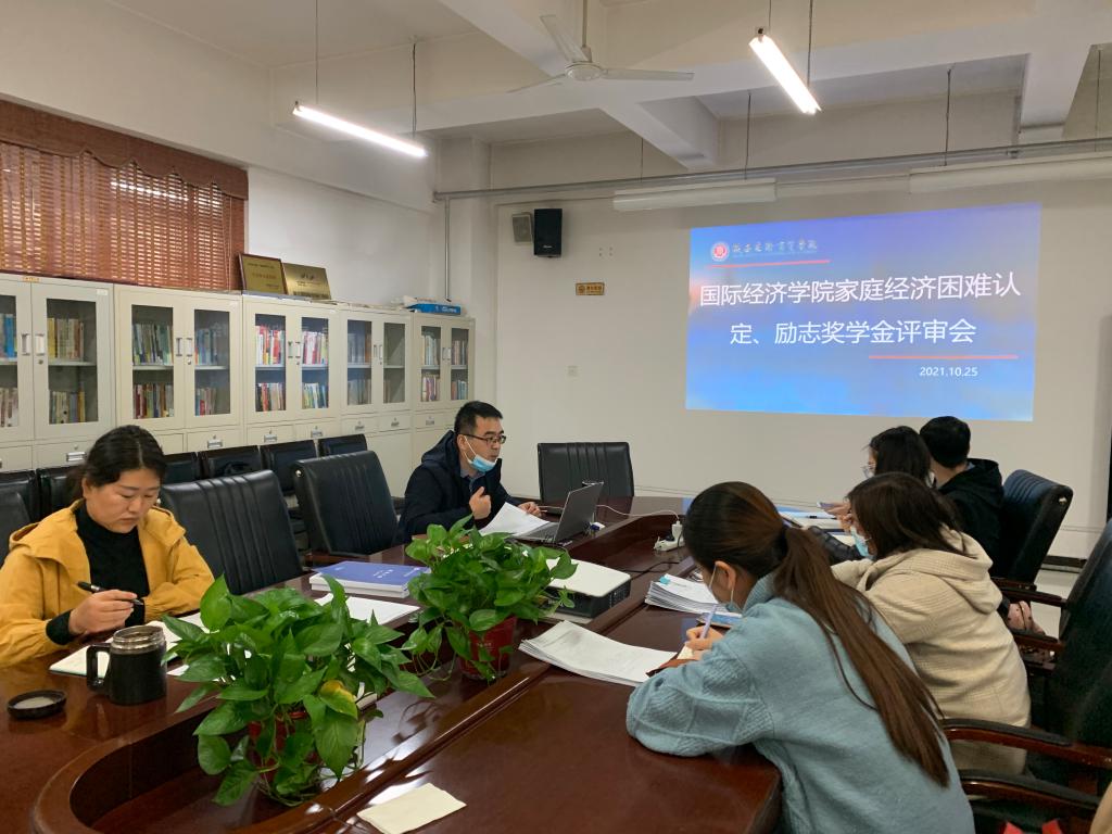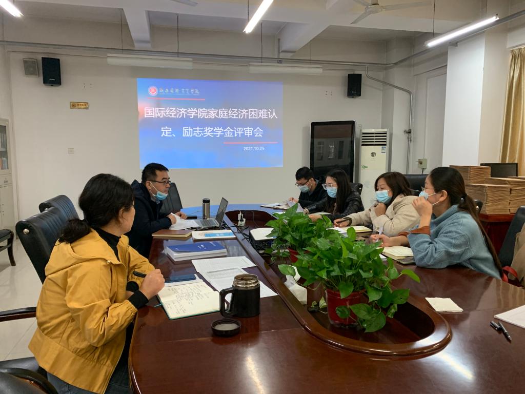 10月25日上午10点,国际经济学院组织召开2020--2021学年国家励志奖学金评审会议于西咸会议室进行评审。会议由办公室主任荣超主持,党总支副书记路敏及全体学管人员参加了会议。