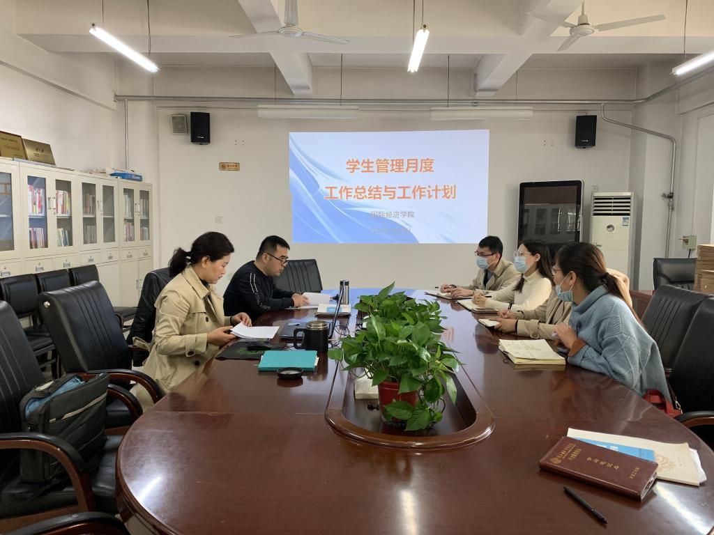 按照本年度学院学生管理工作计划,于10月18日上午10点在学院西咸会议室召开学生管理工作月总结例会。会议由学院党总支副书记路敏主持,办公室主任荣超及学院全体学管人员参加会议。