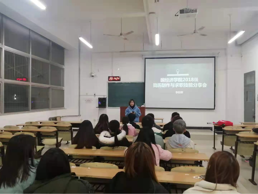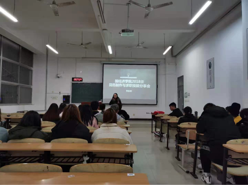 为了进一步的提高大家的求职能力,国际经济学院于2021年10月14日晚,在2J123教室进行了毕业生简历制作与求职技能分享会,本次会议由辅导员李彤辉老师组织召开,2018级部分毕业生参会。