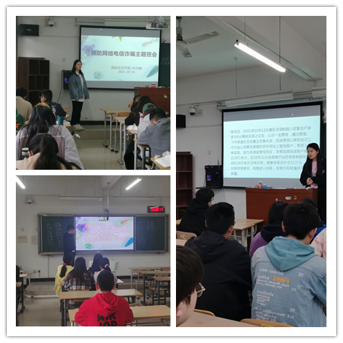 为了加强同学们电信诈骗防范意识,提高自我预防、自我保护和自我应对的能力,保护自身财产安全。2021年10月13日和14日国际经济学院2020级、2019级组织各班召开了“预防电信诈骗”主题班会。