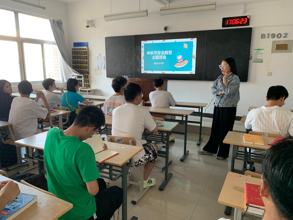 中秋团圆佳节即将到来,为加强学生假期安全防护意识,确保广大同学的身体健康和生命安全。9月17日下午15:00时,国际经济学院2018级辅导员李彤辉组织2018级学生开展“中秋节安全教育”主题班会。