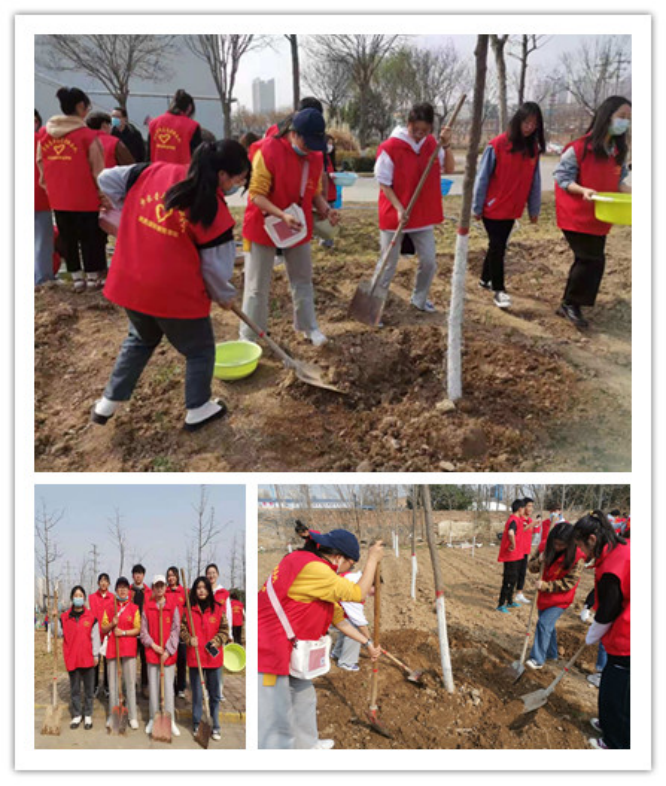 ——“保护生态,播种绿色”义务植树活动.为践行“绿水青山就是金山银山”的先进理念,增强广大学生环保意识,国际经济学院团总支于3月12日下午在步长体育场东侧组织青年志愿者们开展绿色植树活动。此次活动让志愿者们深刻感受到保护环境,爱护校园的迫切需要,激发了同学们创造美好校园环境的热情。