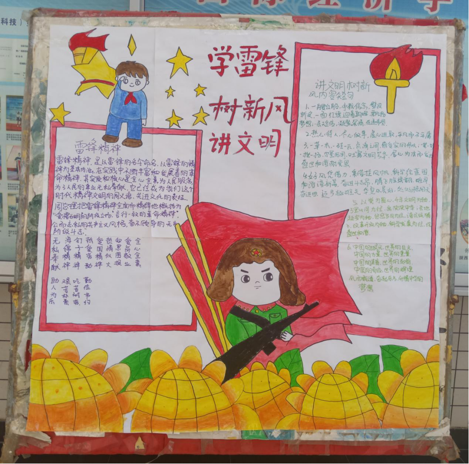 ——组织“学雷锋”主题板报活动。为使全院师生深入了解雷锋,学习雷锋,营造浓厚的“学雷锋”氛围,国际经济学院团总支组织开展了以“学雷锋”为主题的板报宣传活动。各班积极参与,精心设计,充分利用板报这一宣传阵地对雷锋进行全方位报道,并向全院师生展示了新时代大学生对雷锋精神的感悟与理解,让“学雷锋”主题板报成为校园文化建设一道靓丽的风景线。