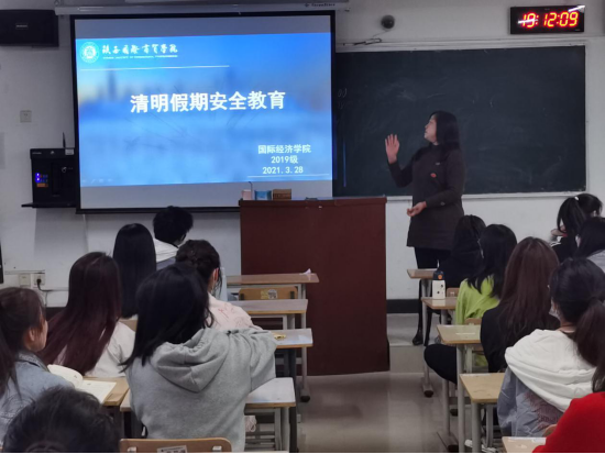 为做好 2021 年清明节假期学生安全稳定工作,提高同学们假期安全防范意识,巩固学校文明校园创建成果,确保学院各项工作顺利开展, 3月28日晚,国际经济学院各班级组织召开“清明节安全教育主题班会”。