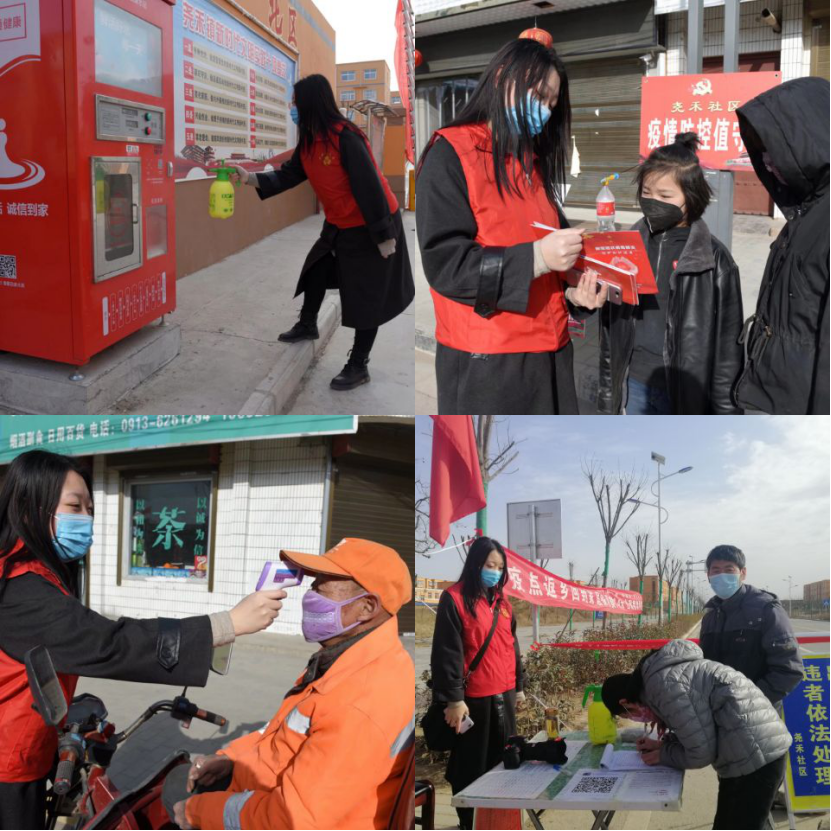 金融工程B1703班赵欣悦--自2015年赵欣悦受到母亲的影响,参加了渭南市白水县心连心爱心公益协会。本次作为一名疫情防控志愿者的她之前就从事过一些相关公益志愿服务活动,她表示自己很喜欢志愿者这个默默无闻,无私奉献的岗位,如今又加入防控志愿团,想要贡献自己的一份力量。在防控志愿服务过程中她耐心的为每一位社区居民解释生命的重要性、疫情的危害及传播速度,提醒过往车辆司机和行人佩戴好口罩,查看外出人员健康码、行程码,宣传疫情防控的重要指示和精神,维持社区的秩序,为抗击疫情贡献青春力量。