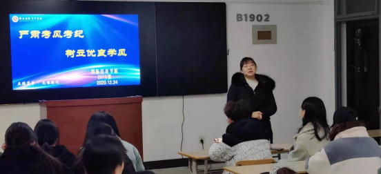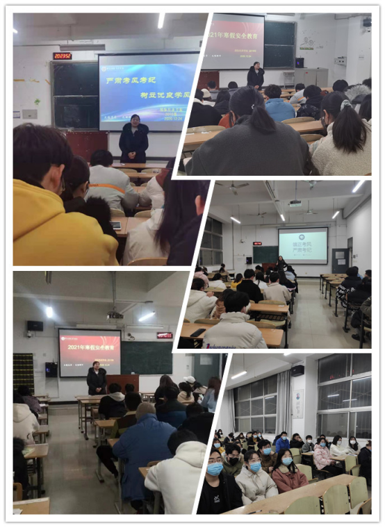 随着本学期期末考试的到来,寒假也随之临近,同学们既面临考试的压力,又充满对寒假的期待。为教育引导学生在期末考试中自觉遵守考试纪律,端正考试态度,树立良好考风,12月24日晚自习,国际经济学院各年级各班召开了以“严肃考风考纪、树立优良学风”和“寒假安全教育”为主题的班会。
