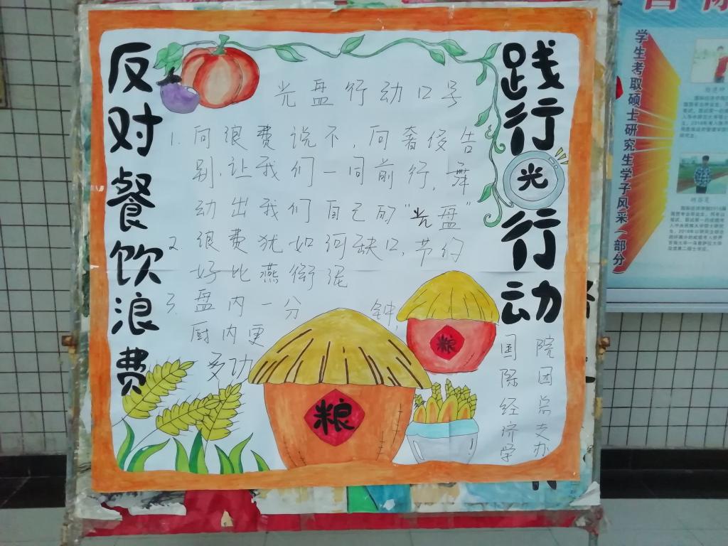 ——组织制作主题板报。为进一步加强反对餐饮浪费的宣传力度,学院于12月初组织各班进行板报制作,通过多样的形式板报展示宣传节俭,反对浪费,让节俭的美德更加深入人心。