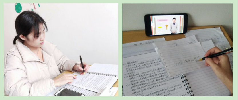 延迟开学是打赢疫情防控战的重要举措,我校利用“互联网+教育模式”实现教学课程应开尽开,教职员工“离校不离教、离生不离岗”,确保“延期不延教、停课不停学”,最大限度降低疫情对教学进度和学习效果的影响。虽然停课了,但是学习没有停。在老师们紧张而又有序的安排下,所有同学们都通过网络在家进行学习。下面让我们一起来走进几位同学的生活现场,感受疫情中他们的学习的点点滴滴。