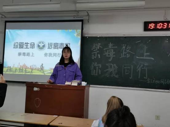 班会伊始,各班主持人通过PPT展示,从毒品的概念、种类、以及吸毒给个人、家庭、社会所带来的各种危害,为同学们做了分享;辅导员李老师结合社会相关案例深入浅出地为同学们做了讲解,让同学们认清其危害,树立自我保护意识,远离毒品,养成健康文明的生活方式。