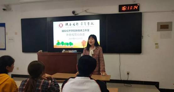 国际经济学院新媒体工作室的全体干部与国际经济学院19级新媒体成员、19级各班班长进行了会面,在见面会上新媒体两位学生负责人对新成员们表示了衷心的祝贺与欢迎,并就新媒体的重要性及发展等问题与新成员与各班班长展开交流。全场气氛异常热烈,参会同学倍感亲切。