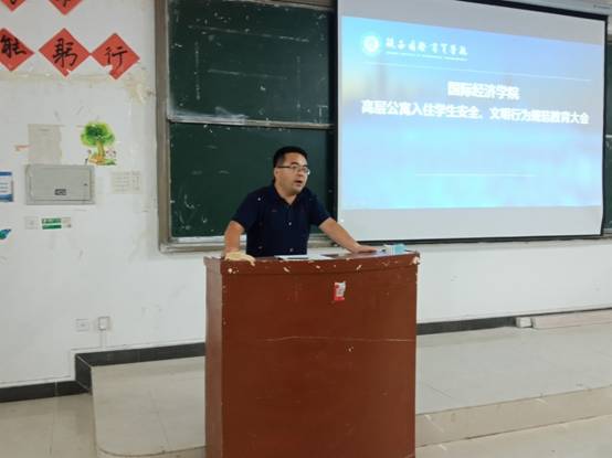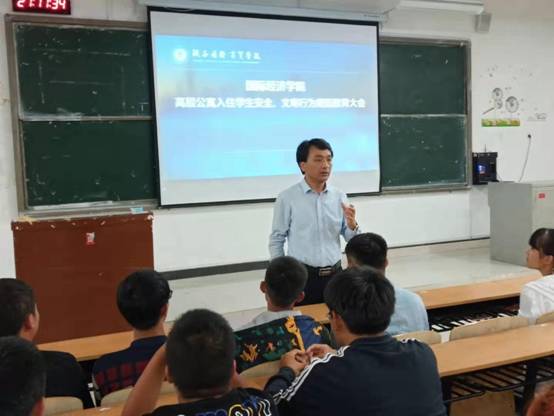为落实高层公寓管理相关规定及学生处及徐院长的指示精神,国际经济学院组织全体同学于9月11日晚20:30,召开高层公寓入住学生安全,文明行为规范教育大会。本次教育大会由学院党总支副书记张孝峰,学生科科长荣超主持招开,全体辅导员参加。