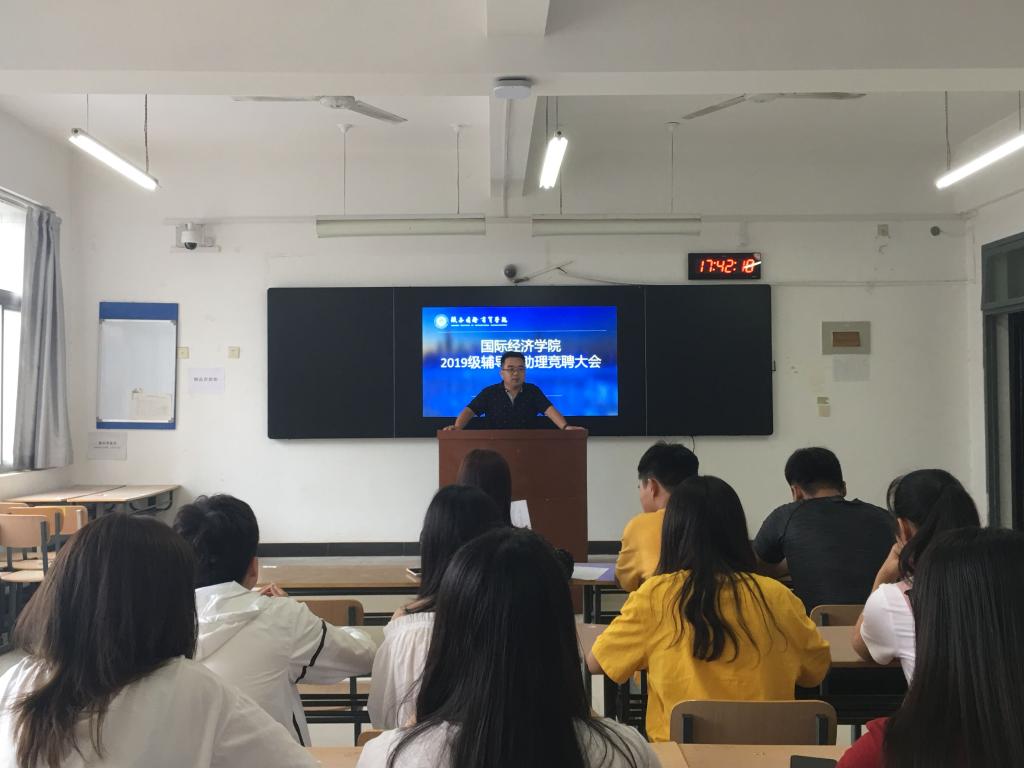 为更好服务2019级新生,帮助新同学们尽快适应大学生活,充分发挥朋辈帮扶作用,9月3日下午17:30,我院在2J418多媒体教室举行2019级新生辅导员助理竞聘大会。学生科科长荣超、2019级新生辅导员李义玲、团学主要学生干部担任评委并参加了竞聘大会。