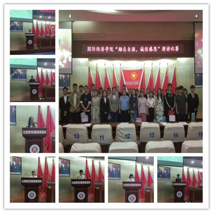 ——学院开展“励志自强、诚信感恩”主题演讲活动。通过举办“励志自强、诚信感恩”主题演讲的形式,丰富活动,提升效果。使学生对感恩精神的时代价值有了更加深刻的感悟,也必将在今后的学习生活中明确方向,从身边做起,实践力行传递感恩精神。也增强了大学生对社会主义核心价值观的深刻理解,同时,引导学生塑造诚信品质,树立感恩意识,做新时代文明大学生,对促进学院优良学风建设具有重要意义。