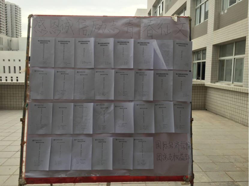 ——学院开展“感恩诚信•励志青春”征文活动。本次征文活动过程中,共收投稿件260余份,并选取优秀稿件集中在院内进行了展示,通过征文活动形式的开展,进一步宣传了国家资助政策,全面加强了对学生的励志感恩教育,充分展现出家庭经济困难学生的青春奋斗风采,也体现出家庭经济困难学生在国家资助政策和学校相关配套政策的支持下,不畏困难、积极进取、奋发学习、自立自强、诚信感恩、成长成才的良好精神面貌。