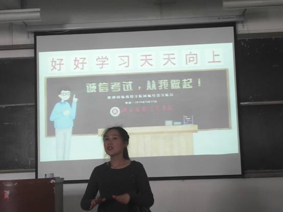 为号召同学们在即将到来的重修考试中自觉遵守考试纪律,营造“文明考风、诚信考试”的氛围,5月17日下午14:00,2018级辅导员李彤辉老师组织全体同学在2J226召开“诚信考试”主题班会。