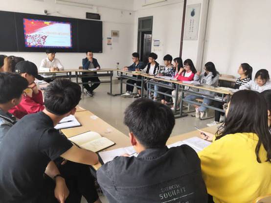 为庆祝新中国成立70周年,迎五四运动100周年来临之际,国际经济学院团总支于2019年5月4日下午17:30在2J418召开以“青春心向党,建功新时代”为主题的学习会议。本次会议由团总支副书记李斌主持,团总支书记荣超、团总支全体人员参加了会议。