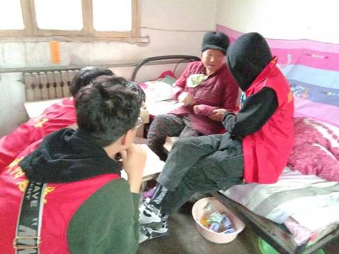 早上9点,志愿者们以校门口为起点准时出发,带着“服务之心,关爱之心”向夕阳红敬老院出发。到达敬老院后,老人们已经在院子里面坐好欢迎我们的志愿者。细心的志愿者准备了文艺节目送给老人们,敬老院里顿时萦绕着欢声笑语。在整个志愿活动开展期间,志愿者们有的到各个房间,陪老人们拉拉家常、讲讲笑话,讲讲养生小知识,给老人们带去欢笑和快乐;还有的志愿者帮助老人整理内务,打扫卫生。看到老人们灿烂的笑容,听到老人们爽朗的笑声,志愿者们充分体会到了本次志愿活动的意义所在——弘扬志愿精神,关注老年群体。两小时的志愿服务时间很快过去,大家合影留念,和老人们一一告别。