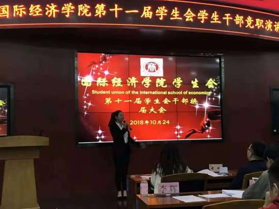 2018年10月24日晚19:00,国际经济学院在经管实验教学示范中心隆重举行第十一届学生会干部竞聘大会。学院党总支副书记张孝峰、团总支书记荣超、辅导员徐亚岚、李彤辉老师以及学院新老学生干部参加了会议。
