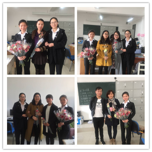 课间走廊上,身着正装的我们捧着鲜花、带着祝福穿梭在楼层的各个办公室间,整个走廊上都充斥着节日的气息。轻轻地推开办公室的门,看到我们到来,女老师们十分开心。我们双手为老师递上花束,并送上节日的祝福,老师微笑的接过,小心的呵护着手中的花。霎时间,师生们的笑脸和节日浓厚的气氛回荡在办公室中。花——献给最美的老师,感谢为我们默默地付出,祝她们永远年轻快乐!