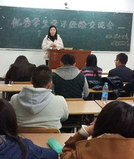 学期已过半,为了鼓舞大家的学习热情,进行有效的学习,取得更好的成绩, 11月10日晚我院国际经济与贸易专业14级学生开展了以“学习经验交流会”为主题的班会,由辅导员李义玲主持。会前,她做了简短讲话,很快把大家带入了状态,本次班会分三个环节进行,学习经验交流学生介绍,经验交流,总结发言。