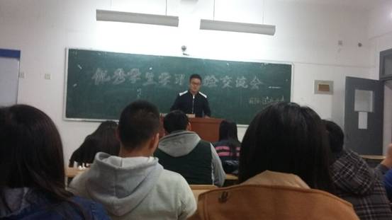 第一环节,由班长介绍本次做学习经验交流的同学,分别是我院本学年度国家奖学金获得者谭春兰同学,步长二等奖获得者曹淑涵同学,国家励志奖学金获得者杨树同学和优秀学生一等奖获得者李佳同学。