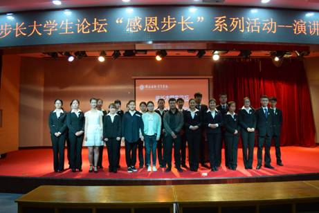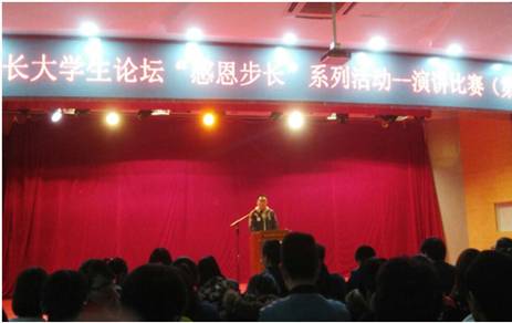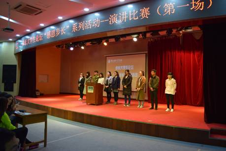 为认真贯彻学习公司领导在2016年年会的重要讲话精神,加强对学生感恩教育、责任意识教育、担当精神教育,促进学生积极践行社会主义核心价值观。由校团委主办的“感恩、责任、担当”演讲比赛,于4月12日晚7:00在学术报告厅二楼圆满举行。