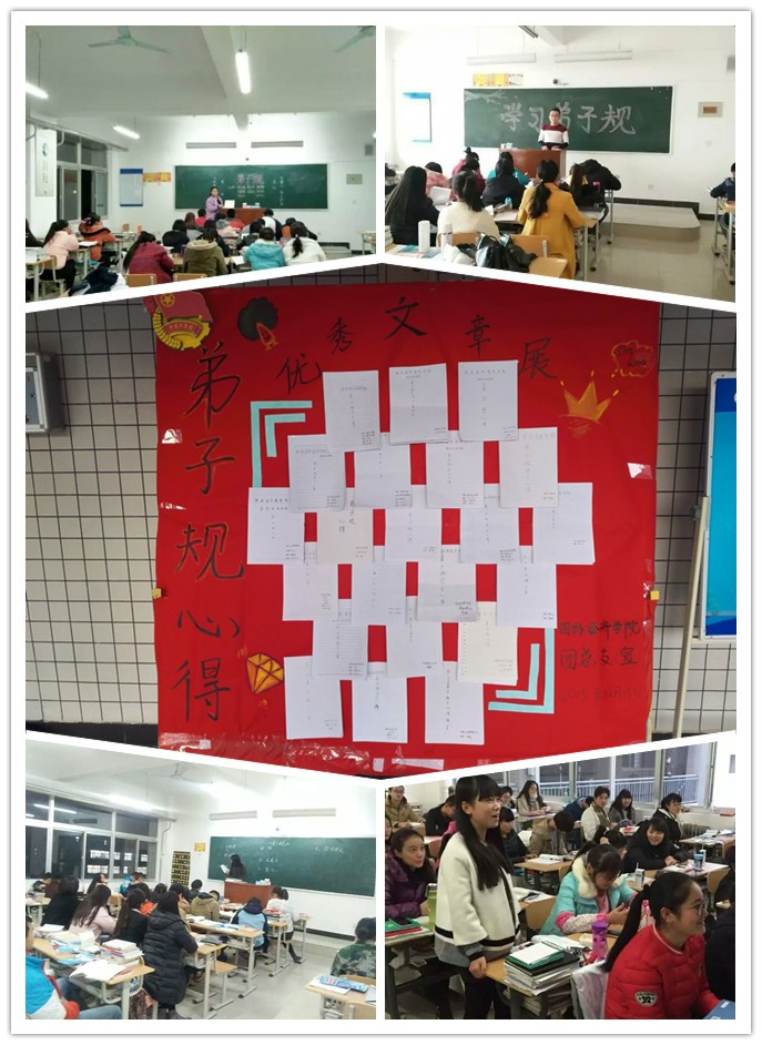 《弟子规》作为我国的传统文化,经历了数千年的不断发展,积淀出了庞大的国学体系,内容涵盖天文、地理、历史、文学等各个门类,包罗万象、博大精深。为重温国学经典,提高大学生精神文明素养,营造和谐向上的团队合作氛围,国际经济学院团总支于11月下旬至12月上旬开展学习弟子规系列活动。