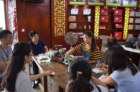 午子绿茶公司总经理助理程晨带领调研队学习午子绿茶发展和中国驰名商标午子绿茶的成功经验