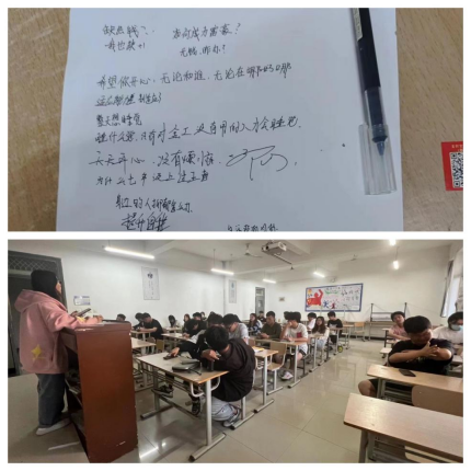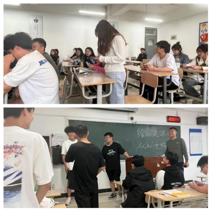 活动伊始,每组三个同学上台,可以喊自己的好朋友组队完成游戏,一位同学要通过手势来演绎黑板上的文字,另一位同学来猜,输的同学要讲述一件自认为最尴尬的事情;在“我的快,你不懂”活动中班长按学号随机抽取同学,被抽到的同学需要拉上自己一位好朋友,两人互相对视看谁先笑。活动过程中教室充满了欢声笑语,每个同学都积极融入其中。最后,每个人在纸上写下自己的烦恼或者解决方法,在其乐融融的氛围中结束了本次活动。
