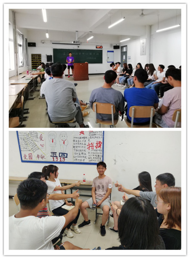 2019年5月26日晚19:00,国际经济学院二级心理辅导站在2J338多媒体教室开展了“团队的竞争与合作”为主题的团体心理辅导训练活动;学院心语心悦心理健康工作室梁慧等四名同学担任团辅助教,32位同学参与本次团训,心理健康实习老师李朝辉指导并参加了团训活动。