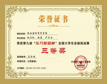 由共青团中央青年发展部主办,全国学校共青团研究中心、东方财富信息股份有限公司承办的第九届“东方财富杯”全国大学生金融精英挑战赛圆满结束。国际经济学院学生代表队通过三个多月校赛、省赛、国赛的激烈角逐,最终荣获全国团体三等奖2项;省级比赛中获得一等奖3项;二等奖2项,三等奖8项的好成绩,奖项数量再创新高,为学校及学院争得荣誉。