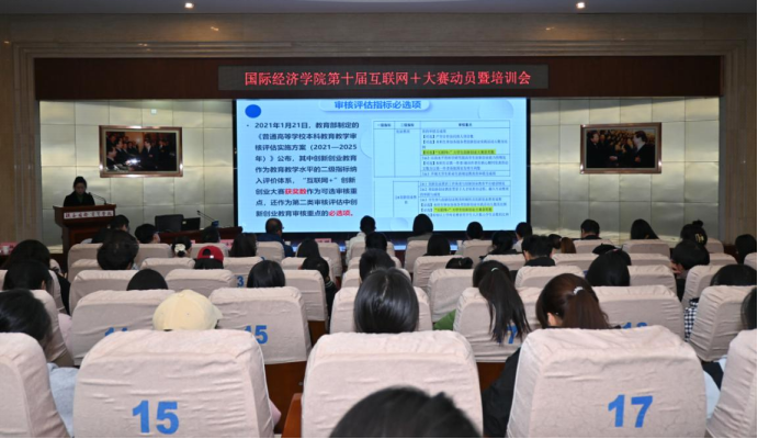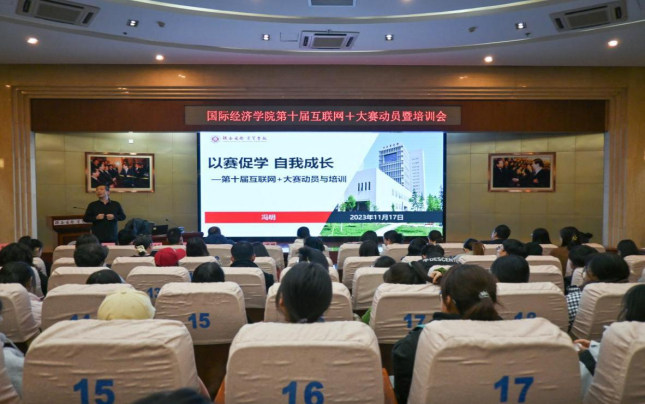 为更好指导我院师生参加第十届中国国际“互联网+”大学生创新创业大赛与2024年大学生创新创业训练计划项目申报,深入开展创新创业教育改革,强化创新创业实践,提高教师创新创业实践指导能力,培养学生创新创业思维及实践能力,国际经济学院于2023年11月17日下午在学术报告厅组织开展第十届中国国际“互联网+”大赛与2024年大学生创新创业训练计划项目申报和重点项目培育启动暨培训会。此次会议由学院党总支副书记荣超主持,创新创业学院院长助理李春苗、国际经济学院执行院长冯明、院长助理张丽、办公室主任张艳、全体专职教师、辅导员老师及全体学生参加会议。