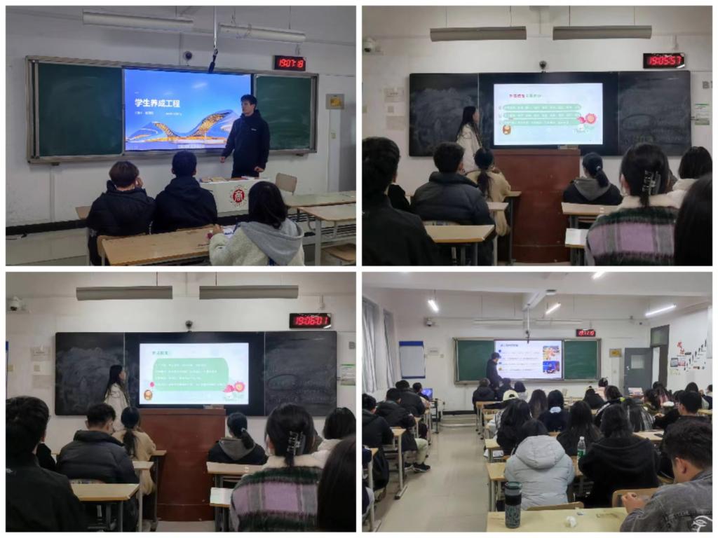在宣讲过程中,2023级辅导员助理虞日满和段绍娜对养成工程进行解读,在填写要求,注意事项等方面做了详细介绍;另外,为了全体新生能够更加直观的了解学习,养成工程先进个人虞日满,进行了他的养成工程成果分享。帮助新生更加深入的理解学生养成工程实施的意义,引导大一新生更好的实施养成工程计划。